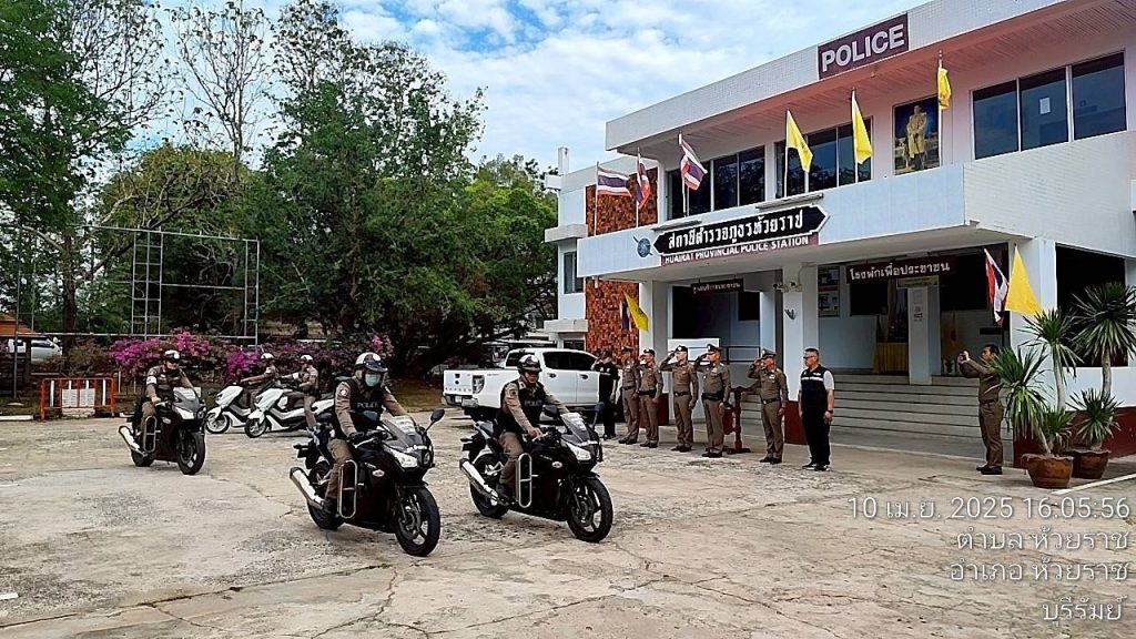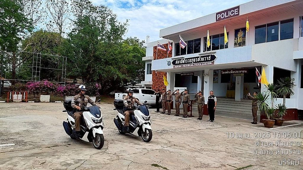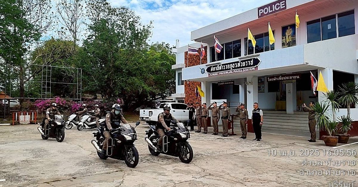 ปล่อยแถวระดมกวาดล้างช่วงเทศกาลสงกรานต์ 10 เมษายน 2568 โดย admin / ข่าวประชาสัมพันธ์,ข่าวฝากประชาสัมพันธ์ วันที่ 10 เม.ย.68 เวลา 16.00 น. พ.ต.อ.จักรกฤษณ์ ศรีสุนทร ผกก.สภ.ห้วยราช พ.ต.ท.วิเชียร อุ่นมี รอง ผกก.ป.สภ.ห้วยราช พ.ต.ท.สุชัย เกวียนโคกกรวด รอง ผกก.(สอบสวน)ฯ พ.ต.ท.ชาญศักดิ์ ประสาทไทย รอง ผกก.สส.สภ.ห้วยราช ร่วมปล่อยแถวระดมกวาดล้างอาชญากรรมก่อนเทศกาลสงกรานต์ 2568 เพื่อเตรียมความพร้อมการปฏิบัติงานผู้ปฏิบัติหน้าที่รักษาความปลอดภัยและอำนวยความสะดวกการจราจรช่วงเทศกาลสงกรานต์ บริเวณลานหน้าที่ทำการ สภ.ห้วยราช ต.ห้วยราช อ.ห้วยราช จ.บุรีรัมย์ ประมวลภาพ Facebook iconFacebookTwitter iconTwitterLINE iconLine